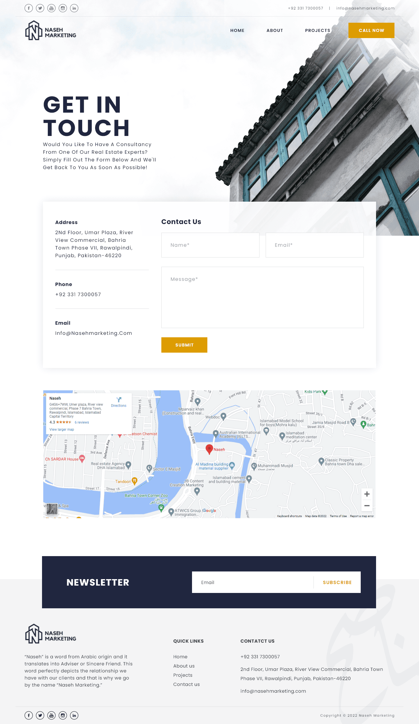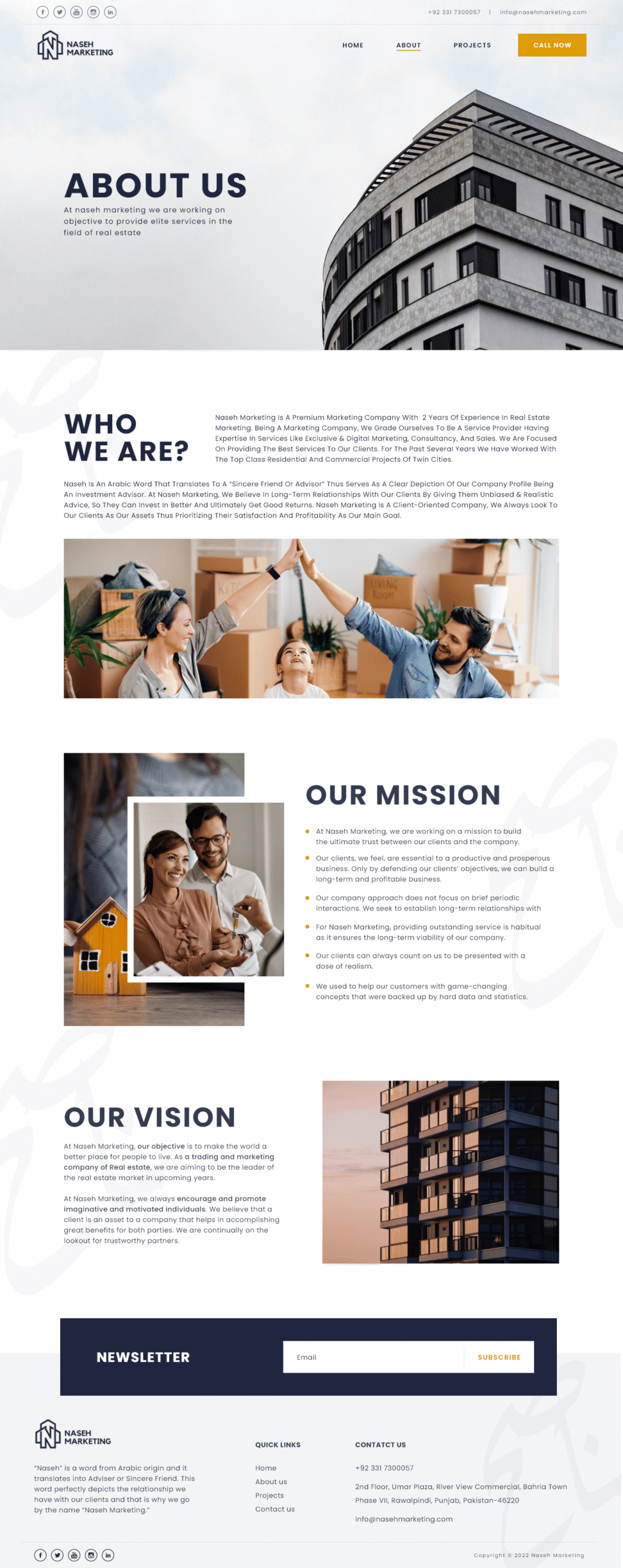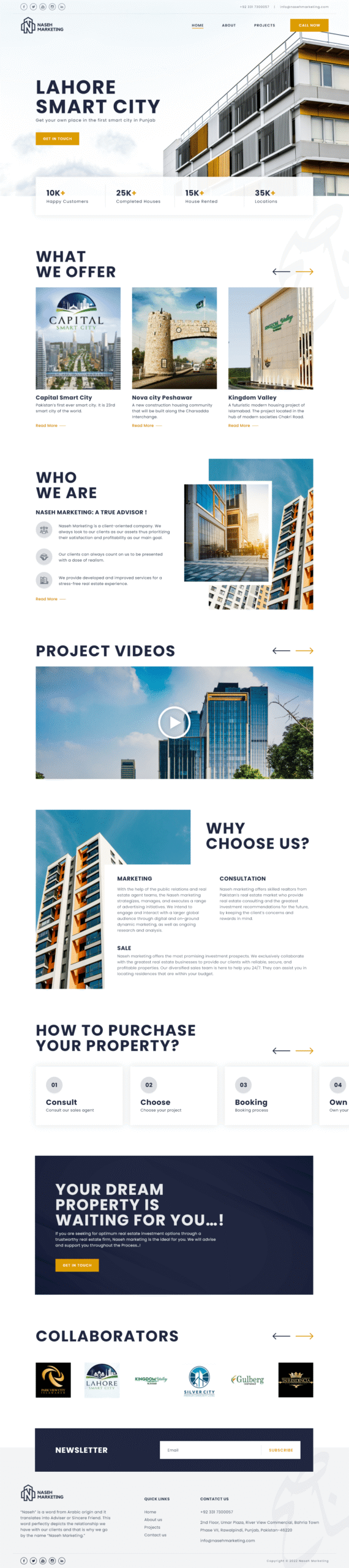 The primary objective was to design a high-converting, trust-centered web experience for a premium real estate marketing firm in Islamabad. My goal was to move away from cluttered, traditional real estate layouts and create a sophisticated digital presence that reflects the “elite services” and “sincere friendship” (Naseh) the brand promises to its investors.